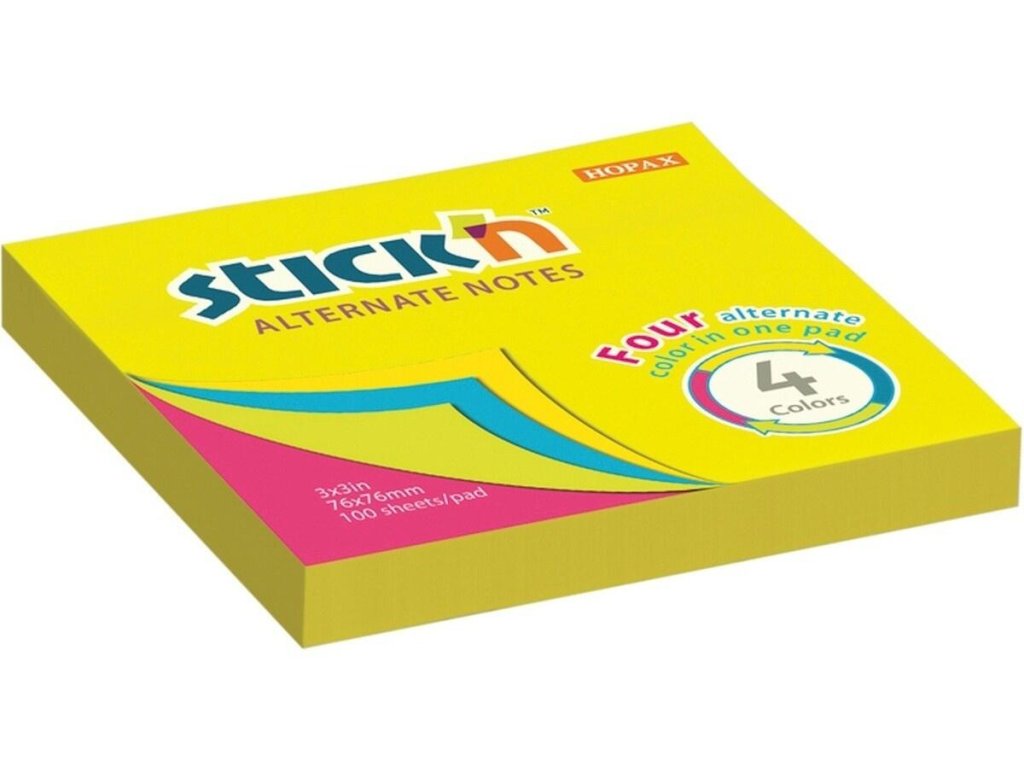 Bloček samolepicí Stick'n Hopax, 76x76 mm, neonový mix, 100 lístků