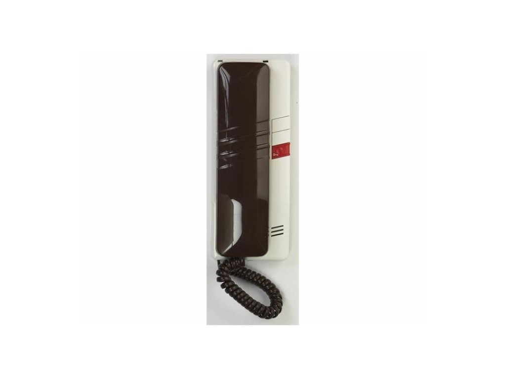 Domácí telefon Tesla DT 93 s bzučákem a 1 tlačítkem el. zámku, hnědo-bílá