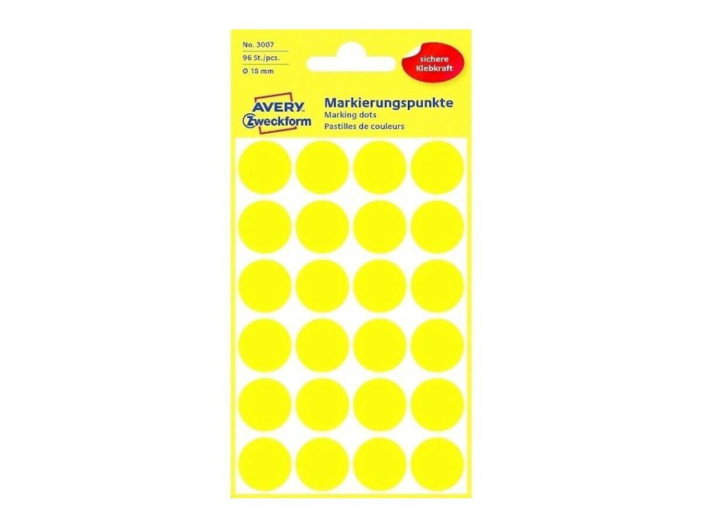 Etiketa arch A6 Avery, kolečko, průměr 18 mm, žlutá, 96 ks