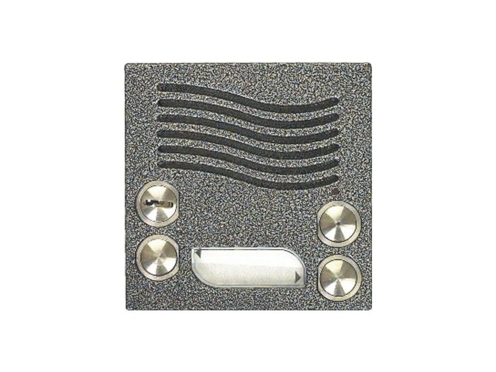 Modul elektrického vrátného se 2 tlačítky pro vyzvánění domácího telefonu, určený pro digitální dvouvodičový systém. Vrátný obsahuje také tlačítko pro aktivaci osvětlení modulů a zámek pro uzamknutí modulů v montážním rámu. Zábrana blokace celého EV trvalým stlačením některého tlačítka TT Možnost součinnosti více EV od více vchodů (1 hlavní elektrický vrátný, ostatní vedlejší EV) Tónová akustická signalizace spojovacího procesu (volná linka, vyzvánění, obsazení, porucha) Identifikace tlačítka podsvětlenou jmenovkou Akustická signalizace stlačeného tlačítka Tlačítko podsvícení s LED diodou na EV Časově omezené podsvícení jmenovek Modulárne rozšířitelné tlačítkové tablo Nastavitelná doba zapnutí el.zámku Zápustná nebo povrchová montáž Horizontální nebo vertikální montáž 2 tlačítka účastníků přímo na modulu EV Provedení v designu KARAT Rozměry: 96,5 x 96,5 mm Síťový napáječ: 4FP67257, 4FP67249 Spolupracuje s DT: 4FP11083, 4FP11083.1, 4FP21103, 4FP21123 Pracovní prostředí: -25°C do +40°C, max.vlhkost 80% Barva: antika stříbrnáDoplňkové parametry