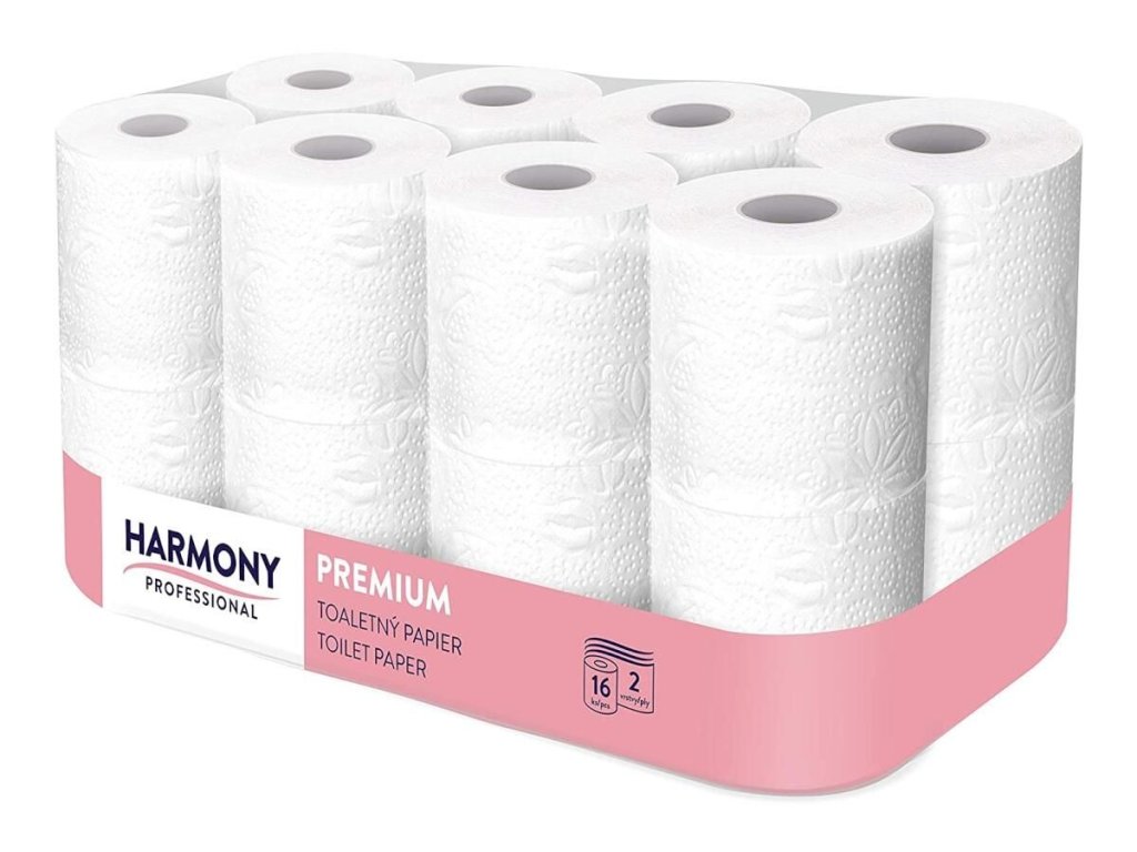 toaletní papír Harmony Professional Premium dvouvrstvý materiál celulóza průměr role 10,5 cm šíře role 9,6 cm návin 18,5 m balení 16 ks barva bíláDoplňkové parametry