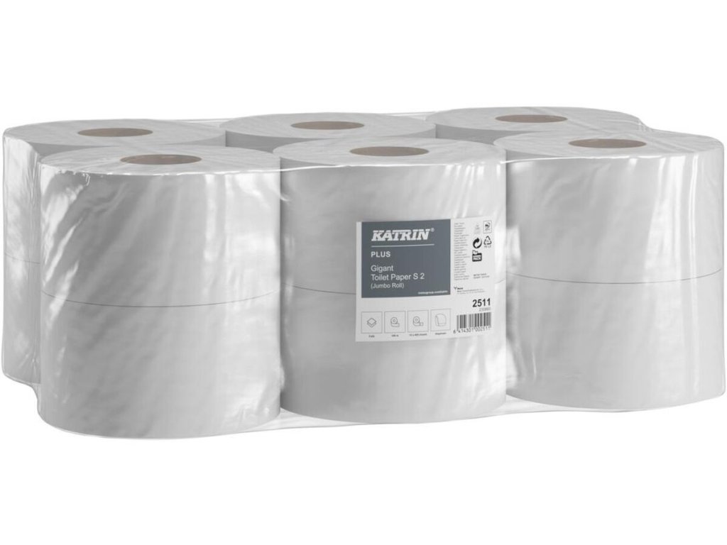 Papír toaletní Katrin Plus Gigant Jumbo S2, 2vrstvý, celulóza, ø 19 cm, 100 m, bílý, 12 ks (2511)