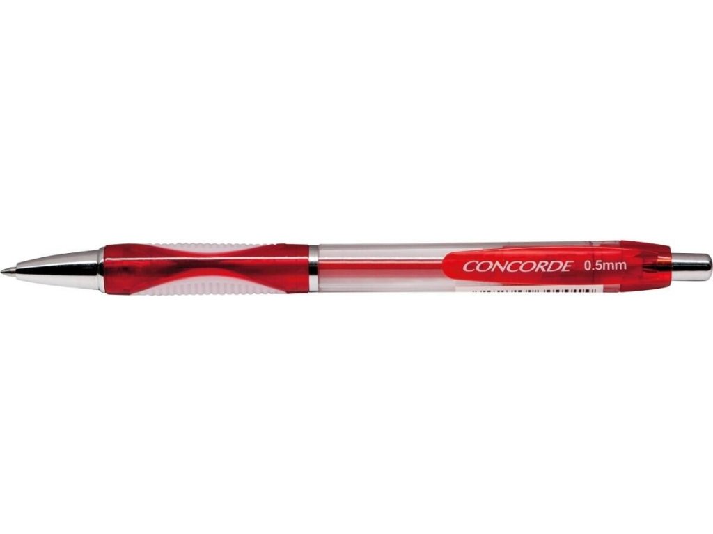 gelové pero se stiskacím mechanismem a gumovým úchopem jednorázové hrot 0,5 mm průhledné tělo - možnost sledování náplně barva náplně odpovídá barvě těla barva inkoustu červenáDoplňkové parametry
