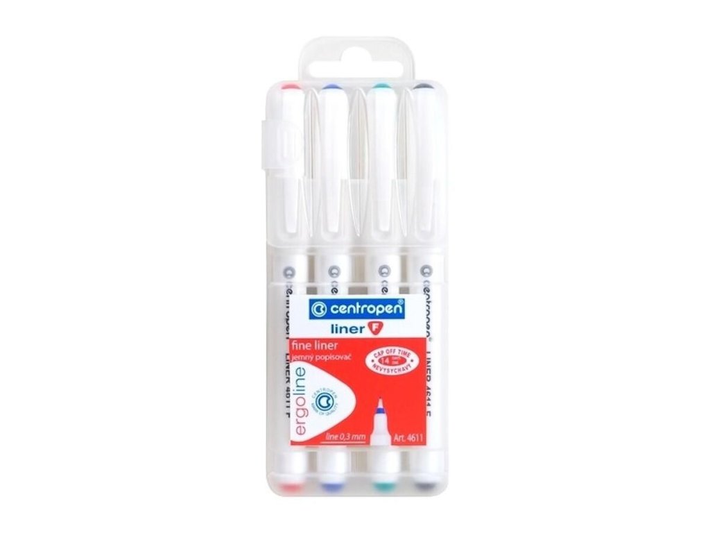 liner s plastickým hrotem nový ergonomický design nevysychavý inkoust - vydrží až 14 dní bez chránítka stopa 0,3 mm délka stopy 1.500 m sada 4 barev (černá, červená, modrá, zelená)Doplňkové parametry