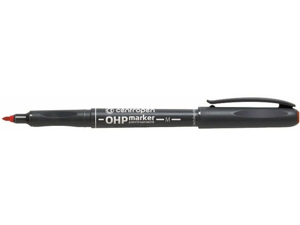 permanentní inkoust smývatelný lihem vhodný k popisování transparentních fólií odolný vodě a setření jemný vláknový hrot stopa šíře 1 mm délka stopy až 700 m barva červenáDoplňkové parametry