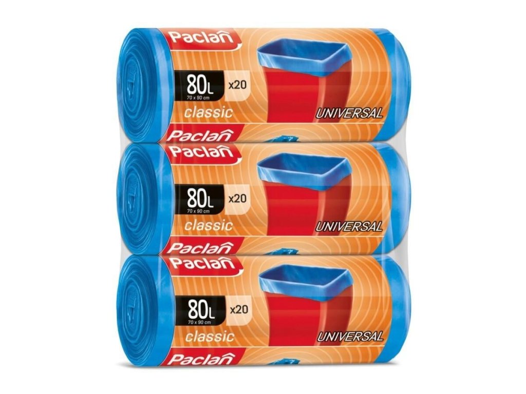 Pytel na odpad Paclan, 70 x 90 cm, 80 l, 15 mikronů, 3x20 ks, modrý
