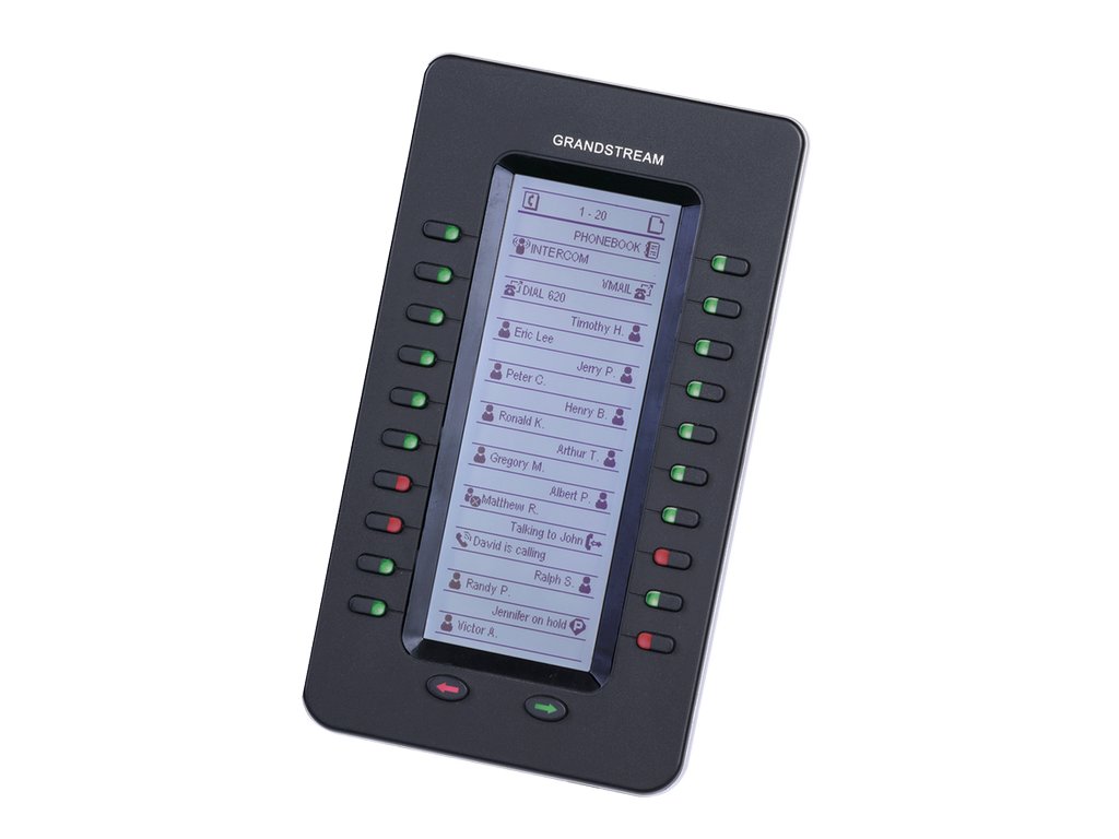 Rozšiřují modul pro IP telefony Grandstream GXP-2200, GXP-2140, GXP-2170 a GXV-3240. GXP2200EXT je externí jednotka s 20 tlačítky pro rychlou volbu účastníka a 2 tlačítky pro přepínání stránky = celkem 40 uložených předvoleb. Barva led diody u každého tlačítka indikuje aktuální stav uživatele, zda například již telefonuje (s kým) nebo je zaneprázdněný. Telefon je možné rozšířit až o 4 jednoteky GXP2200EXT, tzn. rozšíření o 160 rychlých předvoleb. - 128x384 grafický podsvícený LCD displej - 20 BLF tlačítek celkem pro 40 kontaktů (2 stránky po 20ti kontaktech)* - dvoubarevné LED - 2 navigační klávesy pro stránkování - lze spojit až 4 rozšiřující moduly (celkem pro 160 kontaktů) *BLF tlačítka - jsou tlačítka s LED která umožní sledovat stav vybraných linek. Stavy jsou: zvoní, obsazeno, volno. Zároveň fungují jako tlačítka rychlé volby. Poznámka: Produkt vyžaduje odbornou instalaci.Doplňkové parametry