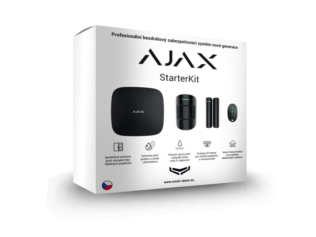 Ajax StarterKit tvoří jádro zabezpečovacího systému Ajax. Rozšířením o další komponenty se promění v univerzální bezpečnostní systém, který Vás spolehlivě ochrání před vloupáním, požárem nebo zaplavením vodou. Ajax StarterKit představuje profesionální řešení ochrany života a majetku s unikátním nadčasovým designem a maximální uživatelskou přívětivostí. Díky modernímu pojetí, designu i ceně je to nejlepší bezdrátový alarm na trhu. Páteří celého systému je Ajax Hub – inteligentní ovládací panel. Ústředna pomocí unikátního bezpečnostního protokolu Jeweller komunikuje s ostatními komponentami Vašeho systému. Všechny komponenty mají 2.stupeň zabezpečení dle ČSN EN 50131 a nabízejí tedy vyšší úroveň zabezpečení. Pro Vaše maximální pohodlí je vyvinuta pro tento bezdrátový alarm chytrá aplikace Ajax pro Váš smartphone dostupná jak pro Android, tak i pro iOS a je plně v českém jazyce. Ajax StarterKit obsahuje vše důležité: 1x Ajax Hub - inteligentní ovládací panel 1x Ajax SpaceControl - ovládací klíčenka s tísňovým tlačítkem 1x Ajax DoorProtect - bezdrátový detektor otevření oken a dveří 1x Ajax MotionProtect - bezdrátový PIR detektor pohybu Všechny komponenty v sadě jsou vybaveny bateriemi a potřebným instalačním materiálem pro rychlou a bezproblémovou instalaci. Balení obsahuje: 1x Ajax Hub - inteligentní ovládací panel 1x Ajax SpaceControl - ovládací klíčenka s tísňovým tlačítkem 1x Ajax DoorProtect - bezdrátový detektor otevření oken a dveří 1x Ajax MotionProtect - bezdrátový PIR detektor pohybu Rozměry balení: 285 x 305 x 75 mm Hmotnost balení: 1 070 gDoplňkové parametry