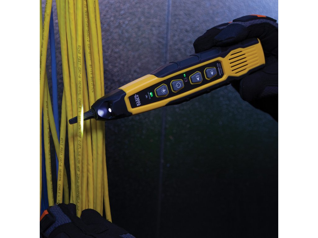 VDV500-123 Nový model sondy k tonovému generátoru - KLEIN TOOLS - Vyhledávání trasy vodičů bez napětí ve spolupráci s tónovým generátorem případně testerem vybavaným tónovým generátorem - Citlivý, odolný, vyměnitelný nekovový vodivý hrot - Pracovní světlo u hrotu pro lepší práci ve tmavých místech - 3.5 mm sluchátkový jack pro práci v hlučném prostřední (sluchátka nejsou součástí balení) - Svorkovnice na sondě, která potvrzuje tónovaný pár - Možnost výměny hrotu (VDV999-068) - Zapnutí jedním tlačítkem signalizace napájení LED indikátorem zapnutí - není třeba držet tlačítko stisknuté - Automatické vypnutí (10 minut) - Indikátor slabé baterie - Napájení 4 x AAA baterie v balení Pracuje s přístroji Klein's Scout® Pro, Lan Scout®, Jr. a Commander™ serie testerů • Provozní rozsah 6562 ft. (2000 m) maximum • Pracovní prostřeví - vlhkost 10% – 90% bez kondenzace • Pracovní teploty 14° to 122°F (-10° to 50°C) • Skladovací teplota -4° to 140°F (-20° to 60°C) • Rozměr 1.75" x 8.88" x 1.13" (44 x 226 x 29 mm) • Hmotnost 5.7 oz. (161.6 g) včetně baterií • Baterie životnost: Activita 25 hodit Pohotovostní režim/Uskladnění: 3 rokyDoplňkové parametry
