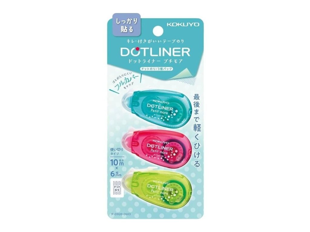 Strojek lepící Kokuyo Dotliner, 6 mmx10 m, permanentní, 3 ks, mix