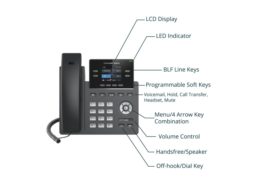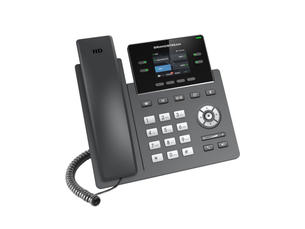 Zařízení GRP2612G je dvouřádkový IP telefon z GRP řady VoIP telefonů, podporující 2 SIP účty, 4 víceúčelové linky a má gigabitové porty. Telefon je navržen a sestrojen speciálně pro potřeby všech vytížených pracovníků. Nespornou výhodou telefonu je jeho velmi snadné ovládání. Telefon disponuje elegantním designem a barevným LCD displejem. Výhodou je též jednoduchá výměna přední desky, která umožňuje snadné přizpůsobení loga. Telefon obsahuje bezpečnostní funkci určenou operátorům, která zajišťují podnikovou bezpečnost a to včetně bezpečného spuštění, duální firmware a šifrované ukládání dat. Zařízení je podporováno GDMS (Grandstream’s Device Management System), který poskytuje centralizované rozhraní pro konfiguraci, poskytování, správu a monitorování koncových bodů Grandstream. GRP2612G disponuje mnoha funkcemi, mezi které patří: přesun hovoru, čekání hovoru, automatická odpověď, flexibilní plán vytáčení, vyzvednutí hovoru, SCA, BLA, telefonní seznam až pro 2 000 kontaktů, personalizované vyzvánění. Telefon má k dispozici stojan, který je možno polohovat ve dvou různých úhlech. Telefon lze namontovat na zeď (montáž na zeď je prodávána samostatně). Zařízení podporuje mnoho jazyků, samozřejmostí je také čeština a slovenština. Hlavní benefity zařízení: Barevný LCD displej 320x240 mm. Samozřejmostí je podpora HD audia, a to včetně širokopásmových kodeků G.722 a Opus. 16 virtuálních víceúčelových klíčů ( VPK). Síťová rozhraní: Duální spínací automatické snímání 10/100/1000 Mbps, Ethernetové porty s integrovaným PoE. Další informace: QoS (Quality of Service): vrstva 2 QoS (802.1Q, 802.1P) a vrstva 3 (ToS, DiffServ, MPLS) QoS Hesla na úrovni uživatelů a administrátorů, autentizace založena na MD5 a MD5-sess na základě ověření, 256bitový AES šifrovaný konfigurační soubor, SRTP, TLS, 802.1x řízení přístupu k médiím, bezpečný boot.Doplňkové parametry