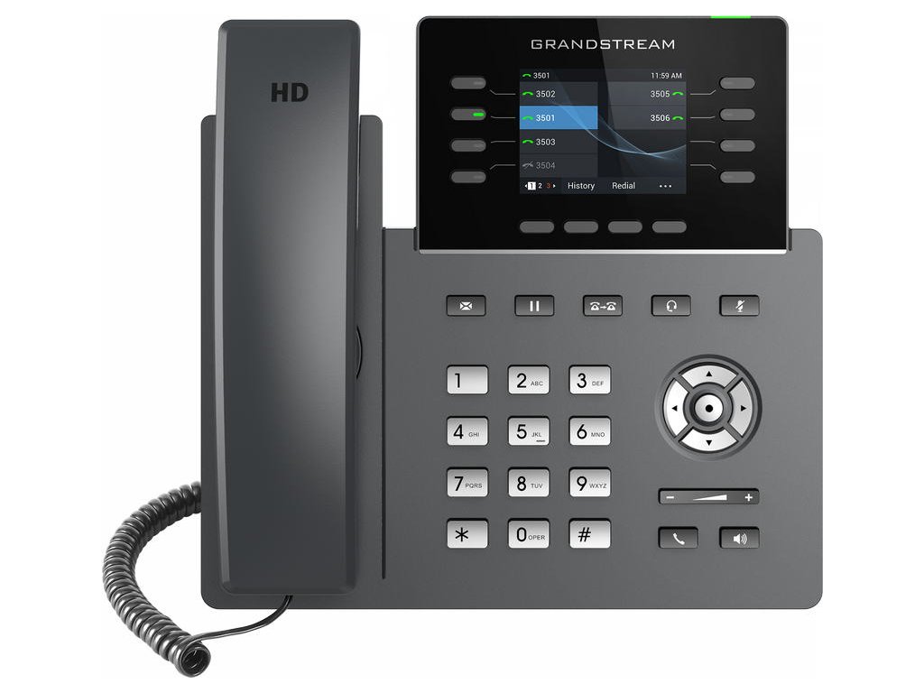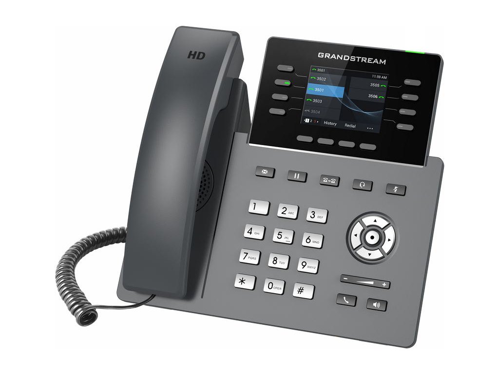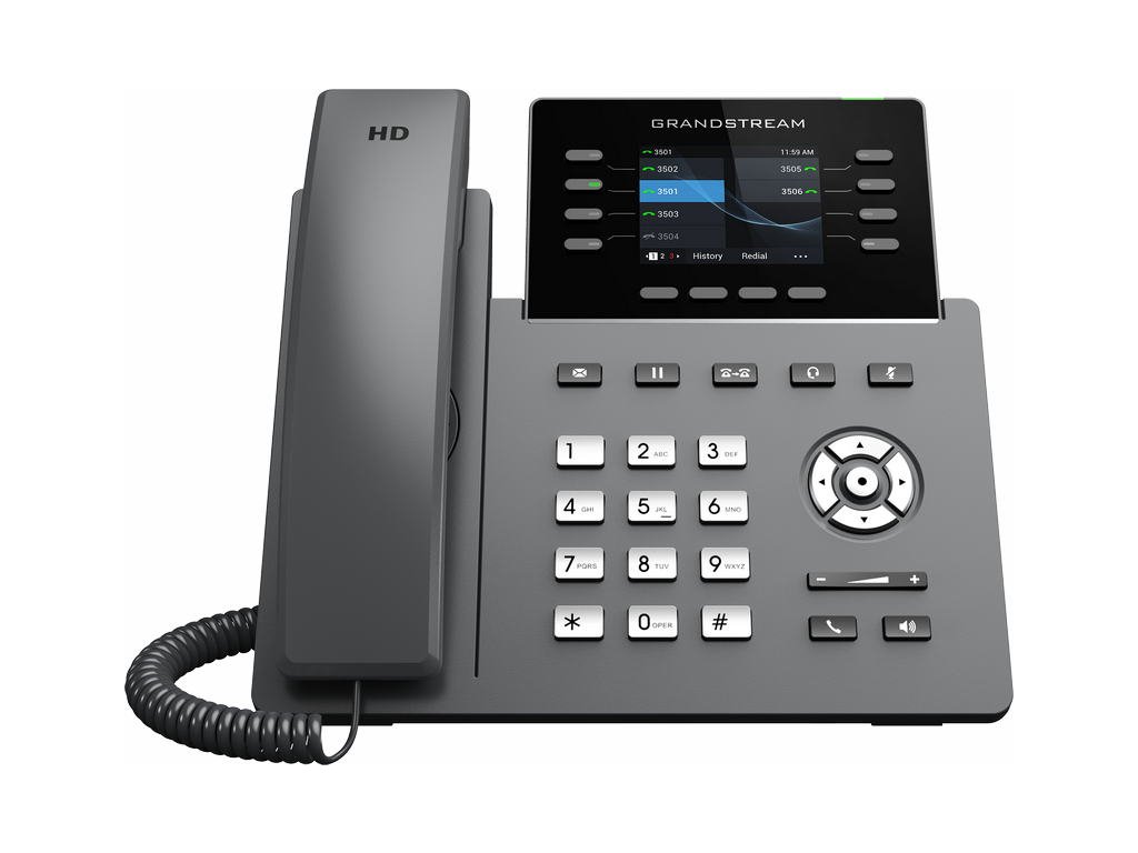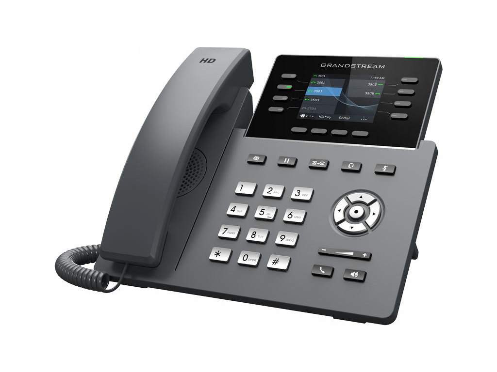 GRP2624 je součástí řady GRP IP telefonů a je to profesionální 8linkový model navržený se zero-touch provisioningem pro hromadné nasazení a snadnou správu. Vyznačuje se elegantním designem a sadou funkcí nové generace, včetně: 5cestné audio konference pro maximální produktivitu, integrovanou Wi-Fi, podporou Bluetooth, HD zvukem jak na reproduktoru, tak i na sluchátku, aby byla zajištěna maximální kvalita hlasu, podpora EHS pro náhlavní soupravy Plantronics a USB na podporu náhlavních souprav Grandstream řady GUV. GRP2624 je kompatibilní s rozšiřujícím modulem GBX20, který přidává funkčnost, všestrannost a flexibilitu až se 40 kontakty na modul a podporou až 160 kontaktů připojením 4 rozšiřujících modulů. Řada GRP obsahuje funkce zabezpečení na Enterprise úrovni včetně secure boot, duálního image firmwaru a šifrovaného uložiště dat. Pro zřizování a centralizovanou správu je GRP2624 podporován systémem Grandstream Device Management System (GDMS), který poskytuje centralizované rozhraní pro konfiguraci, provisioning, správu a monitorování nasazení koncových bodů Grandstream. GRP2624 je perfektní volbou pro zaneprázdněné profesionály a recepční, kteří potřebují spravovat vysoké objemy hovorů s pokročilými funkcemi. GRP2624 je navržený pro snadné nasazení ve velkých firmách, u poskytovatelů služeb a dalších velkoobjemových trzích, nabízí snadno použitelný a jednoduše nasaditelný hlasový koncový bod. SPECIFIKACE: ■ Barevný TFT LCD 2,8" 320*240 pix ■ 8 linek, 4 SIP účty ■ 32x virtuálních tlačítek u LCD ■ 10x BLF (MPK) tlačítek vedle číselníku ■ 4x XML programovací tlačítka ■ USB pro náhlavní soupravu Grandstream řady GUV ale i pro ostatní značky USB náhlavek ■ Konektor RJ9 pro připojení náhlavních souprav, umožňující EHS k Plantronics náhlavním soupravám ■ Integrované Bluetooth pro připojení sluchátek, synchronizaci kontaktů, kalendářů a další ■ Integrovaná dvoupásmová Wi-Fi 802.11 a/b/g/n/ac (2,4 GHz a 5 GHz) ■ Plně duplexní hlasitý reproduktor s HD zvukem pro maximálně kvalitní a jasný zvuk ■ Je vybaven noise shield technologií pro minimalizaci šumu v pozadí ■ Dva gigabitových ethernetové porty 10/100/1000 Mbps s integrovaným PoE ■ Podporuje 5cestnou audio konferenci pro jednoduše sestavitelné konferenční hovory ■ Ochrana na úrovni Enterprise včetně secure boot, duálního image firmwaru a šifrovaného uložiště dat ■ Vyměnitelná čelní deska umožňují snadnou úpravu loga ■ Podporováno GDMS, které poskytuje centralizované rozhraní pro konfiguraci, provisioning, správu a monitorování zařízení Grandstream Obsah baleni: - telefon - sluchátko - kroucená šňůra - ethernet kabel - napájecí adaptér 12V/1A - podstavec na stůl - Quick Start Guide (zkrácený uživatelský návod v českém jazyce naleznete v záložce "Ke stažení") Porovnání telefonů Grandstream řady GRP-26xx: GRP-2612 - 2x SIP účty, 4x linky, 2x RJ45 Mb, barevný LCD 2,8" (320x240), 16x BLF GRP-2612P - 2x SIP účty, 4x linky, 2x RJ45 Mb, barevný LCD 2,8" (320x240), 16x BLF, POE (bez síťového adaptéru v balení) GRP-2612W - 2x SIP účty, 4x linky, 2x RJ45 Mb, barevný LCD 2,8" (320x240), 16x BLF, POE, WIFI GRP-2613 - 3x SIP účty, 6x linky, 2x RJ45 Gb, barevný LCD 2,8" (320x240), POE, 24x BLF GRP-2614 - 4x SIP účty, 4x linky, 2x RJ45 Gb, barevný LCD 2,8" (320x240) + 2,4", POE, 16x BLF, 8(24)x MPK,, WIFI, Bluetooth GRP-2615 - 5x SIP účty, 10x linek, 2x RJ45 Gb, barevný LCD 4,3" (480x272), POE, 40x BLF, WIFI, Bluetooth, USB GRP-2616 - 6x SIP účty, 6x linky, 2x RJ45 Gb, barevný LCD 4,3" (480x272) + 2,4", POE, 24x BLF, 8(24)x MPK,, WIFI, Bluetooth, USB GRP-2624 - 4x SIP účty, 8x linek, 2x RJ45 Gb, barevný LCD 2,8" (320x240), POE, 24x BLF, WIFI , Bluetooth, USB - lze připojit GBX20 GRP-2634 - 4x SIP účty, 8x linek, 2x RJ45 Gb, barevný LCD 2,8" (320x240), POE, 32x BLF(VPK),10x MPK, WIFI , Bluetooth, USB FIRMWARE: Aktuální firmware pro IP telefony Grandstream můžete stáhnout zde Připojení náhlavní soupravy: V případě připojení drátových náhlavních souprav Plantronics řady "HW" je nutné zakoupit propojovací kabel U-10P-S. Pro bezdrátové náhlavní soupravy Plantronics budete potřebovat EHS kabel APD-80. Pro připojení drátových náhlavních souprav značky Jabra je nutné zakoupit jeden z těchto propojovacích kabelů: GN-8800-01-06 - kabel kroucený, délka cca 0,5 - 2 m GN-8800-00-25 - kabel rovný, délka cca 0,5 m Volitelné příslušenství: GBX20 - rozšiřující modul pro obsluhu 2x20 linek Poznámka: Produkt vyžaduje odbornou instalaci. Instalace a zprovoznění produktu vyžaduje určitou úroveň znalostí IT problematiky, doporučujeme je proto svěřit kvalifikovaným odborníkům -------------------------------------------------------------- Výrobek je určen pro český trh. Záruka 2 roky. --------------------------------------------------------------Doplňkové parametry