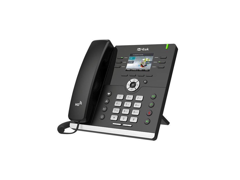 Htek UC923 je inovativní gigabitový IP telefon s barevným LCD. Podporuje až pětistrannou konferenci. UC923 je optimalizován pro vedoucí pracovníky, recepci a administrativu. Programovatelné klávesy mohou být konfigurovány jako BLF, SCA, Intercom, Call Pickup, Call Park a mnoho dalších funkcí. TFT-LCD s vysokým rozlišením a HD Voice přinášejí živé vizuální a zvukové zážitky. Charakteristika: 2,8" barevný displej 320 x 240 pixelů s podsvícením 8 SIP účtů 6 programovatelných tlačítek s LED a popisem na LCD 20 funkčních programovatelných tlačítek na 4 stránkách SIP (RFC3261) / SIP v1 (RFC2543), v2 (RFC3261) Automatické poskytování přes HTTP / HTTPS FTP / TFTP 802.1X / OpenVPN / DHCP / Vlan / QoS / LLDP TLS / UDP / TCP, RTP / RTCP / ZRTP / SRTP HD hlas: HD kodek, HD reproduktor, HD sluchátko EHS s náhlavními soupravami Plantronics a Jabra Dual-port Gigabit Ethernet, PoE adresář pro 1000 kontaktů vzdálený adresář XML/LDAP inteligentní metoda vyhledávání historie voláni: volané/přijaté/zmeškané/přesměrované hovory black listDoplňkové parametry
