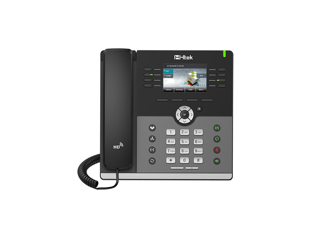Htek UC924U je inovativní gigabitový IP telefon s duálním procesorme a USB portem. Podporuje až pětistrannou konferenci. UC924U je optimalizován pro vedoucí pracovníky, recepci a administrativu. Programovatelné klávesy mohou být konfigurovány jako BLF, SCA, Intercom, Call Pickup, Call Park a mnoho dalších funkcí. TFT-LCD s vysokým rozlišením a HD Voice přinášejí živé vizuální a zvukové zážitky. Charakteristika: 3,5" barevný displej 480 x 320 pixelů s podsvícením dvoujádrový porcesor 12 SIP účtů 8 funkčních tlačítek 8 programovatelných tlačítek s LED a popisem na LCD s 28 různými funkcemi SIP (RFC3261) / SIP v1 (RFC2543), v2 (RFC3261) automatické poskytování přes HTTP / HTTPS FTP / TFTP 802.1X / OpenVPN / DHCP / Vlan / QoS / LLDP TLS / UDP / TCP, RTP / RTCP / ZRTP / SRTP HD hlas: HD kodek, HD reproduktor, HD sluchátko port EHS Dual-port Gigabit Ethernet PoE USB 2.0 port pro náhlavní soupravu nebo nahrávání hovorů adresář pro 10.000 kontaktů vzdálený adresář XML/LDAP inteligentní metoda vyhledávání historie voláni: volané/přijaté/zmeškané/přesměrované hovory black list až 6 rozšiřujících tlačítkových modulů s barevným LCDDoplňkové parametry