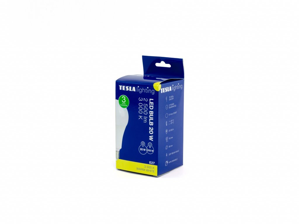 Tesla - LED žárovka BULB E27, 20W, 230V, 2500lm, 25 000h, 3000K teplá bílá 220st