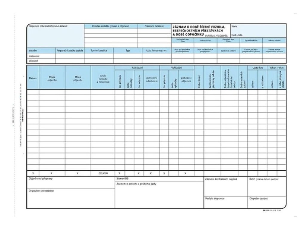 Tiskopis Záznam o době řízení vozidla, A4, OPTYS