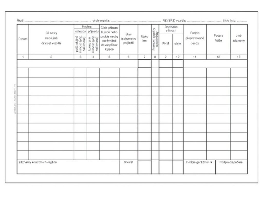 záznam o provozu osobního vozidla stazka nečíslovaný rozsah 50 listů