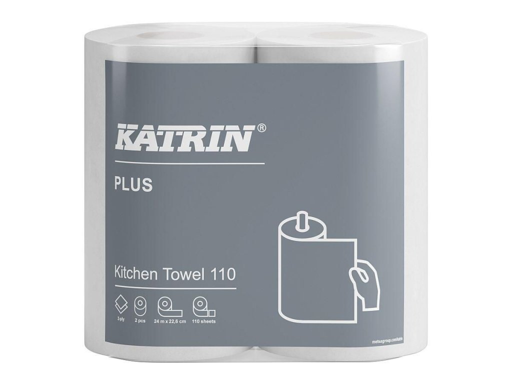 Utěrka papírová Katrin Plus, 2vrstvá, celulóza, kuchyňská role, ø 13,4 cm, 24,2 m, bílá, 2 ks